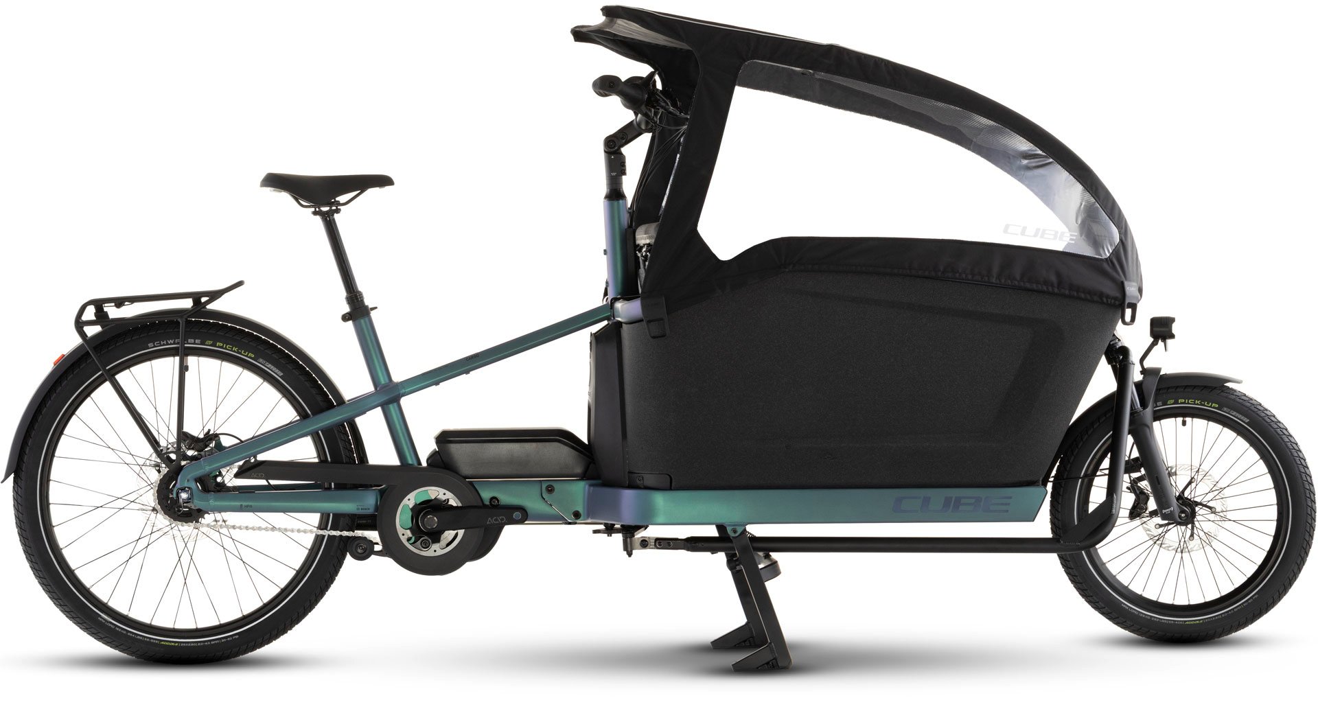 Le Cargo Hybrid Family est conçu pour être un moyen sûr, polyvalent et amusant d'emmener vos enfants avec vous, où que vous alliez. Avec deux sièges pour enfants munis de ceintures de sécurité à l'intérieur du coffre en mousse EPP résistante, et une housse de protection contre la pluie incluse, ils apprécieront la vue et vous serez heureux de pouvoir les voir à tout moment. Les sièges s'enlèvent facilement, ce qui permet de le transformer en porte-charge pratique pour les courses ou d'autres tâches. Avec un poids maximal de 200 kg, il dispose d'une grande capacité pour vous aider dans votre quotidien. Le cadre en aluminium durable comporte un support de moteur intégré pour accueillir le moteur Bosch Cargo Line qui, en tandem avec la batterie 800 Wh incluse, offre jusqu'à 100 Nm de couple ; et il est possible d'ajouter un prolongateur d'autonomie PowerMore de 250 Wh, pour parcourir encore plus de kilomètres entre les charges. Il y a un petit compartiment de rangement supplémentaire pour tous les objets indispensables au quotidien, et un système de verrouillage intégré, qui fonctionne avec un cadenas à chaîne en option, vous permet de verrouiller à la fois le vélo et ce compartiment. Une béquille avec des pieds allongés facilite le stationnement, tandis que le garde-chaîne intégré permet de garder vos vêtements propres. De plus, grâce à un système de direction amélioré avec un rayon de braquage réduit, il est facile et intuitif à conduire.